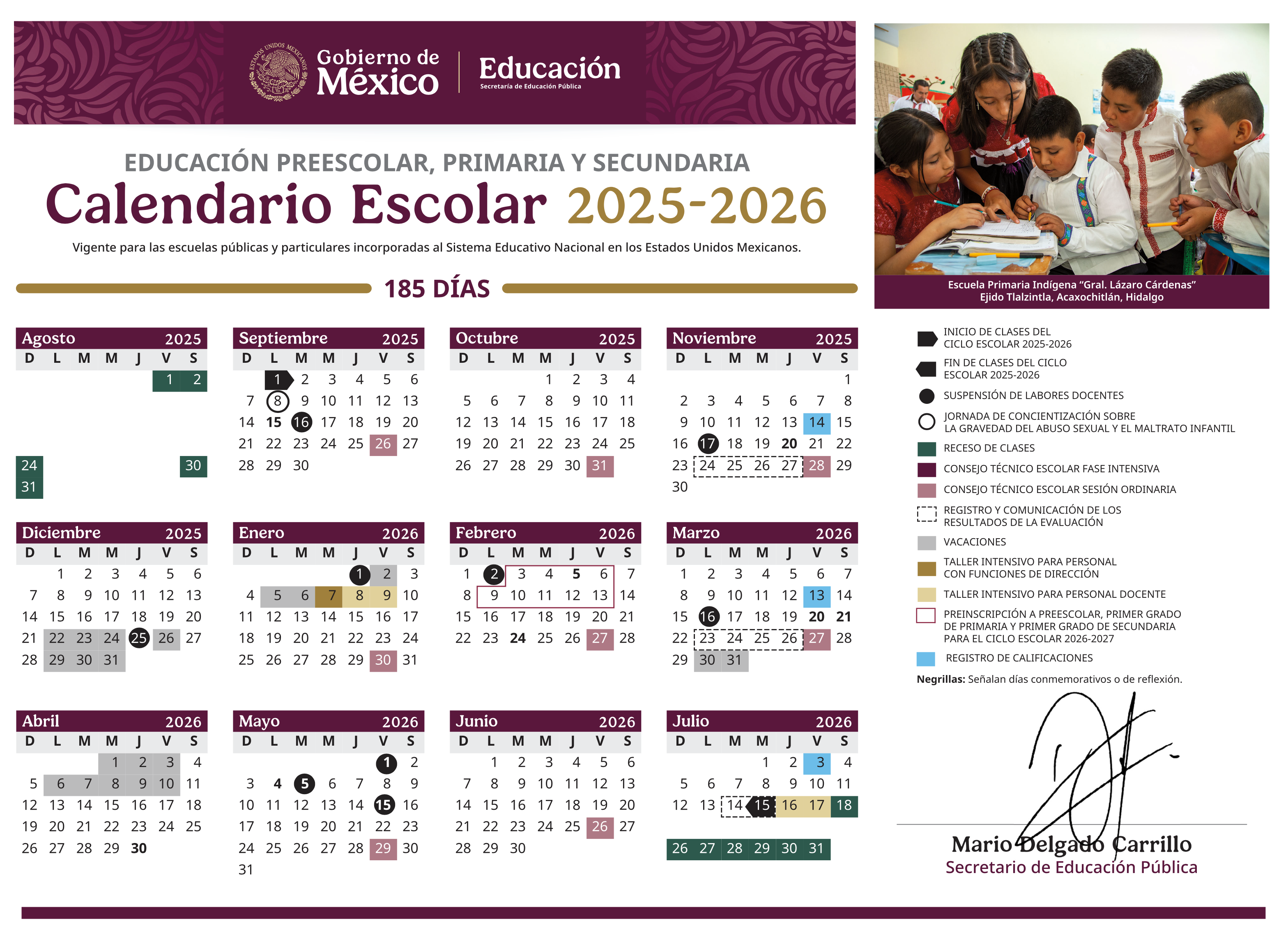 *Con fundamento en los "Lineamientos para el desarrollo y el ejercicio de la autonomía curricular en las escuelas de educación básica del sistema educativo nacional" es obligatorio cubrir un tiempo lectivo para la implementación de clubes.